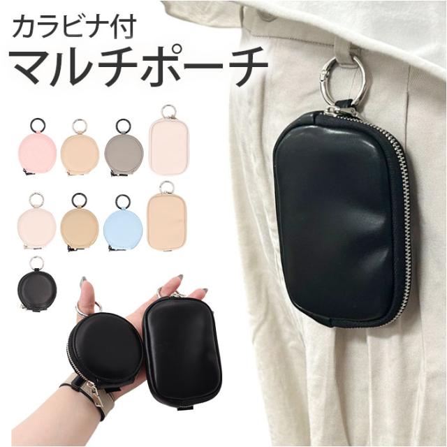 マルチポーチ カラビナ 通販 カラビナ付きポーチ ミニポーチ 小物入れ ポーチ 小さめ コインケース 小銭入れ 小物ケース おしゃれ かわいい オシャレ 可愛い シンプル 無地 レディース メンズ 丸カラビナ ファッション小物 レディースコインケース