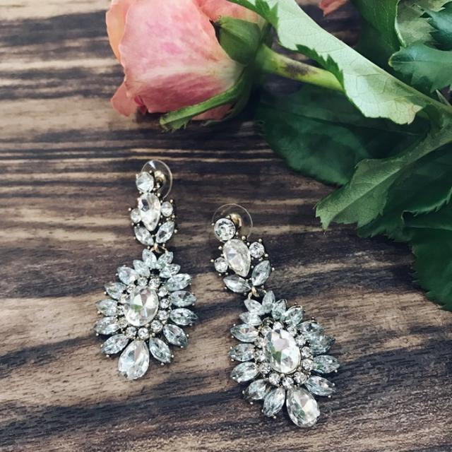 ブライダル ピアス 大ぶり 通販 ブライダルピアス ブライダルアクセサリー ウェディングアクセサリー 揺れるタイプ ゆれる 結婚式 花嫁 新婦 披露宴 パーティ 二次会 2次会 前撮り ウェディングドレス クリアストーン ヴィンテージ風 マーキスカット E-11