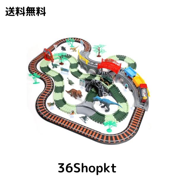 【恐竜レールセット】恐竜フィギュア、専用のカー、立体交差橋、トンネルなどの要素と組み合わせるレールで、子供たちは創造力と想像力を発揮し、自分たちの恐竜の世界を構築することができます。また、レールを組み立てることで、子供たちの手と目の協調能力を鍛えることができます。
