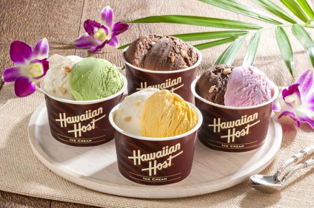 「ハワイアンホースト」の代名詞であるマカダミアナッツのクラッシュを練りこんだミルクチョコアイスと、ミルクとホワイト2種のマカダミアチョコアイスに、相性抜群の3つのフレーバーを組み合わせ、見た目も味も楽しいアイスに仕上げました。
