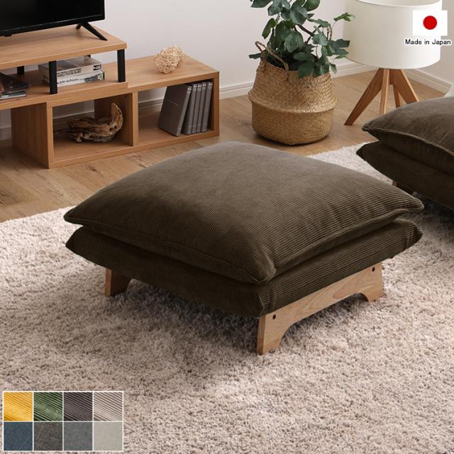 ローソファ オットマン単品 日本製 1人掛け 1P 木製 脚付き コーデュロイ グレー色 全8色 ふっくら極厚ウレタン2重クッション 座椅子 スツール 国産 足置き台 椅子
