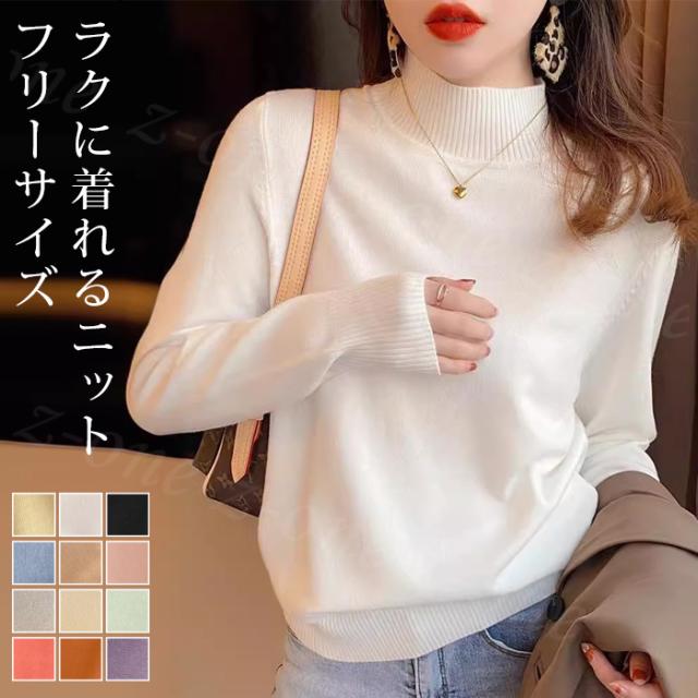 ニット 春新作 3タイプ コットンニット ハイネック クールネック 長袖 きれいめ トップス 洗える サマーニット レーヨン セーター プルオーバー 体型カバー シンプル 着痩せ 華奢見せ あったか 暖かい 防寒 ホワイトデー 卒業式