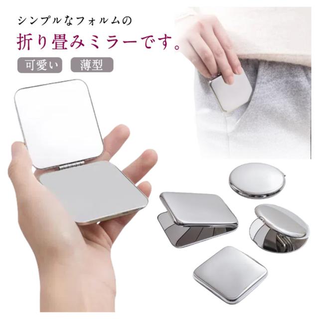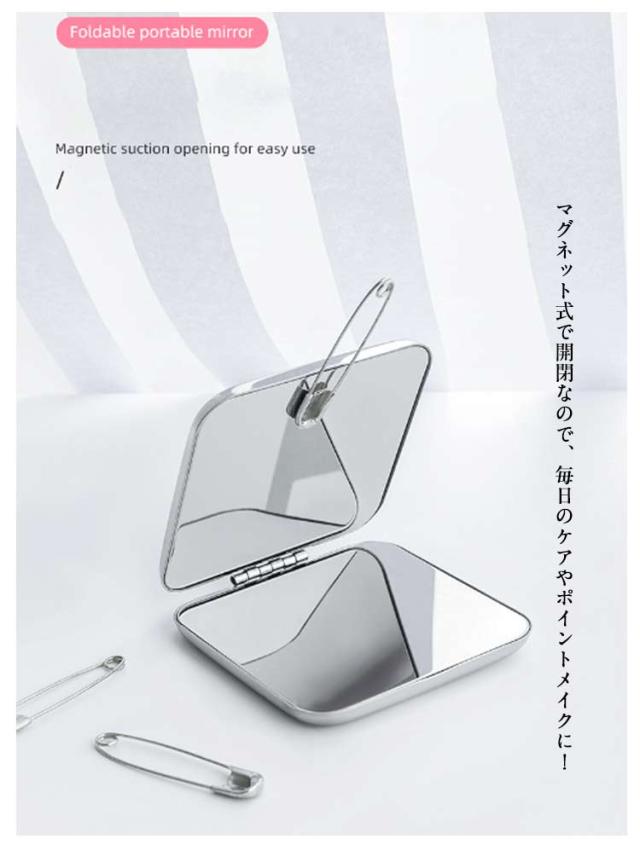 お洒落 ミラー メイクミラー 手鏡 コンパクト 手鏡 スクエア型 折りたたみ 両面鏡 ステンレス 携帯ミラー マグネット式 プレゼント 女性 誕生日 化粧鏡 シンプル 男女兼用 プレゼント