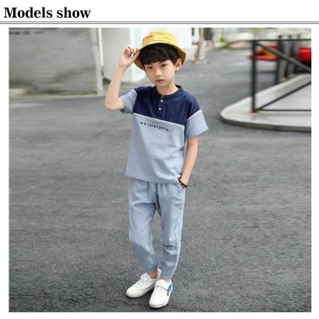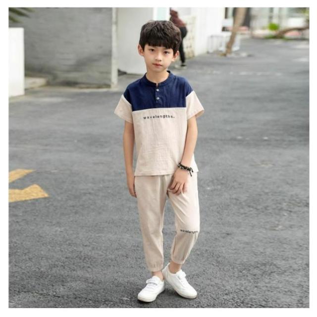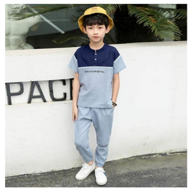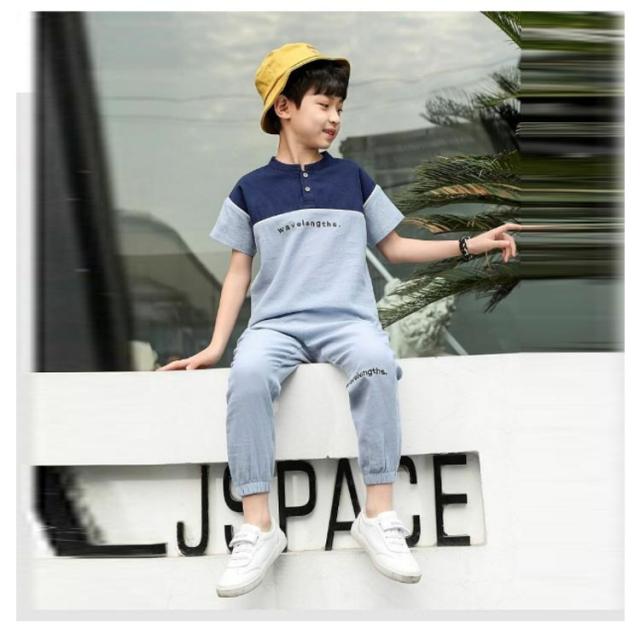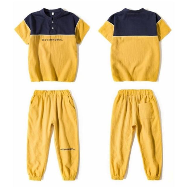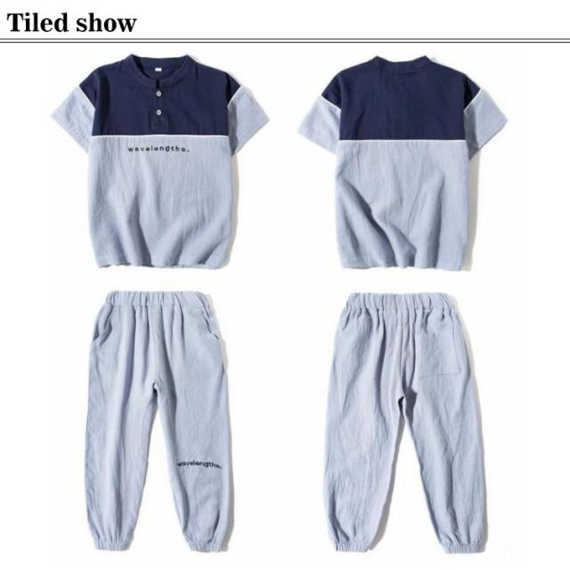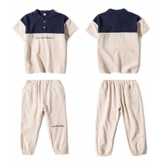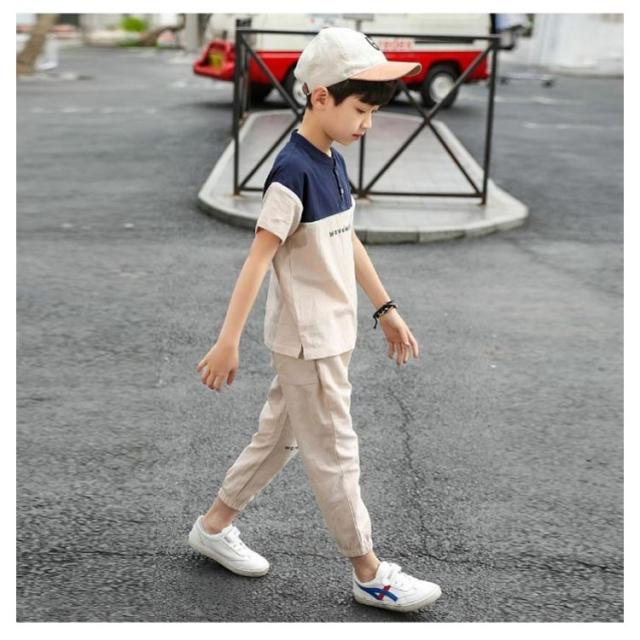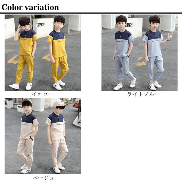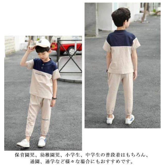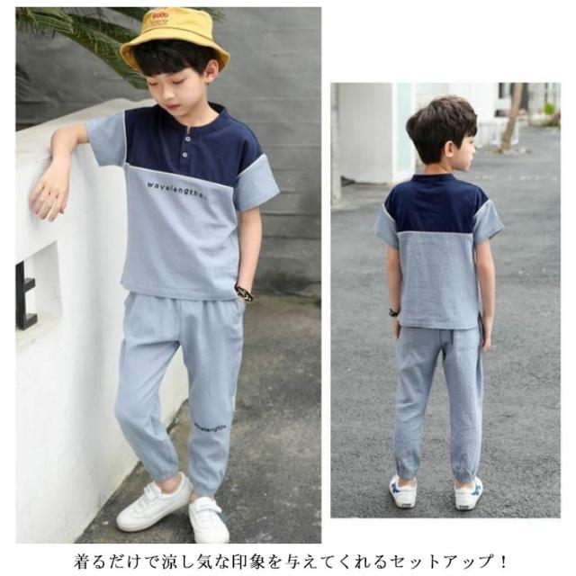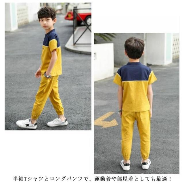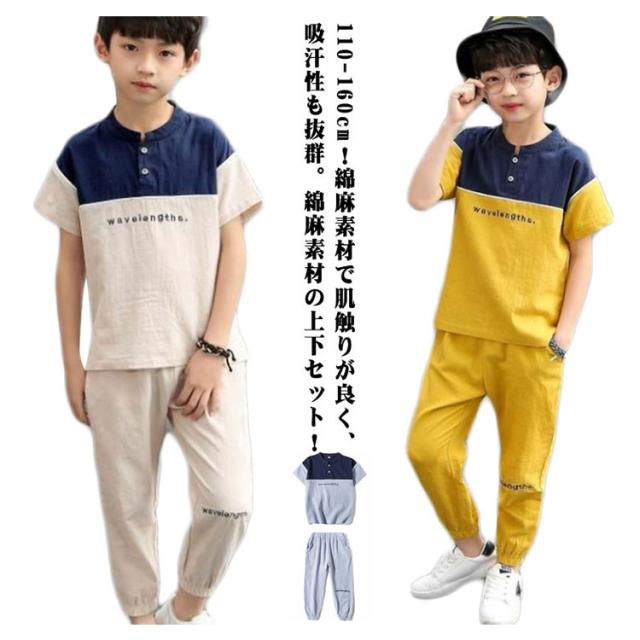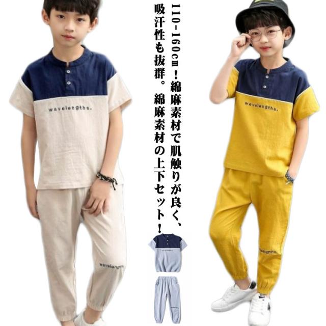 夏 子供服 薄手 男の子 チノパン 2点セット ワイドパンツ 110 セットアップ 半袖 ズボン イージーパンツ 綿麻混 ゆったり セットアップ Tシャツ 半袖 ロングパンツ リゾート スポーツ ジャージ カジュアル キッズウェア 130 子供服 120 パンツ 140 150 160