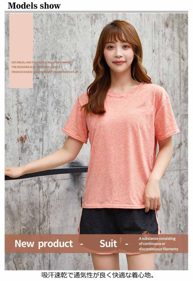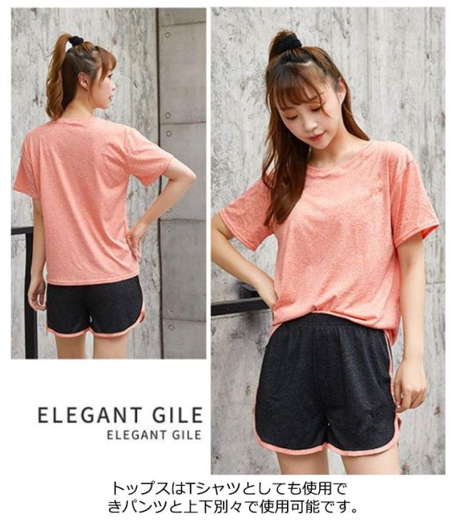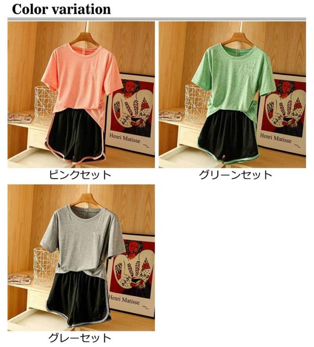 ボトムス 上下セット ジャージ セットアップ フィットネスウェア パンツ 2点セット ストレッチ 半袖Tシャツ レディース ランニングウェア トレーニングウェア ヨガウェア ラウンドネック トップス 吸汗速乾 夏 半袖Tシャツ ショーパン スポーティ カジュアル
