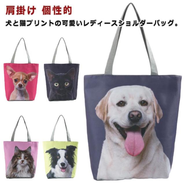 レディース トートバッグ エコバッグ ペット 犬 プリント ショルダーバッグ マチあり 肩掛け 猫 ショルダーバッグ 個性的 記念ギフト ショッピング 旅行 レジャー