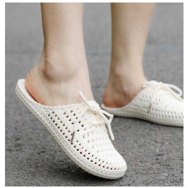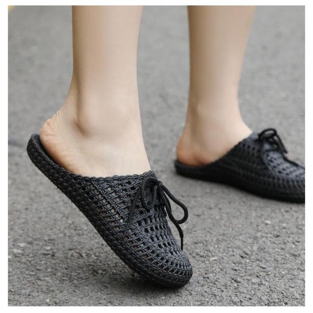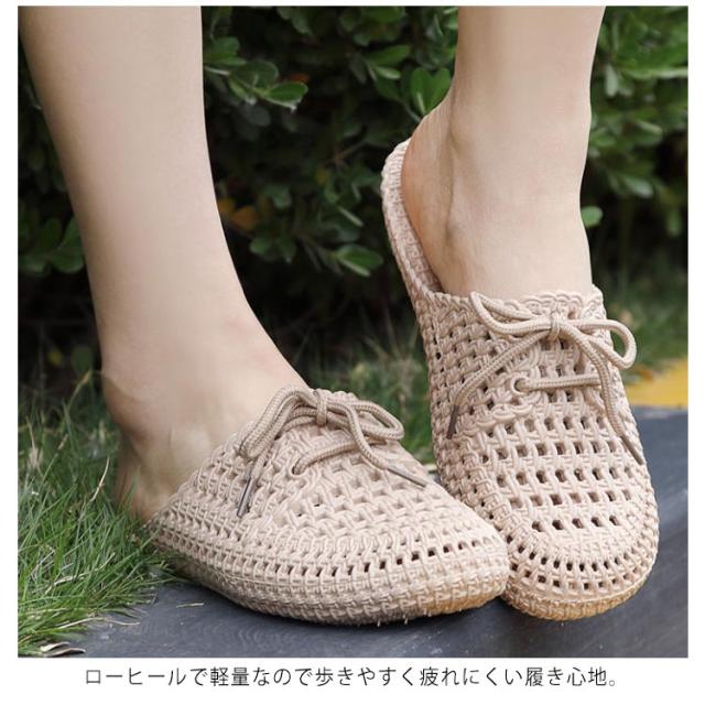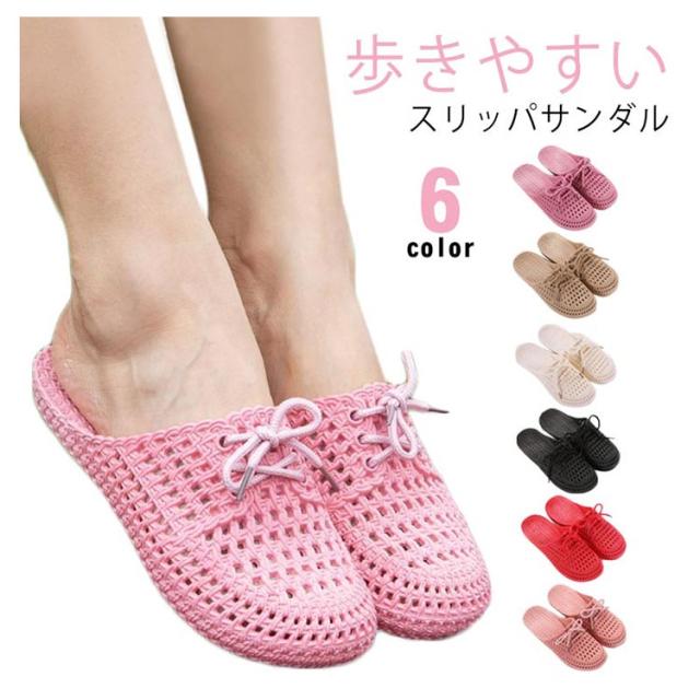 スリッパサンダル メッシュ かかとなし ローヒール フラットシューズ サンダル レディース 歩きやすい ルームシューズ ヒールサンダル パンプス 可愛い 雨靴 ビーチ ぺたんこ PVCシューズ レインシューズ 軽量 スリッパサンダル 夏 メッシュサンダル