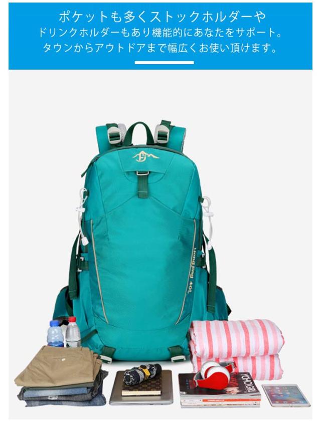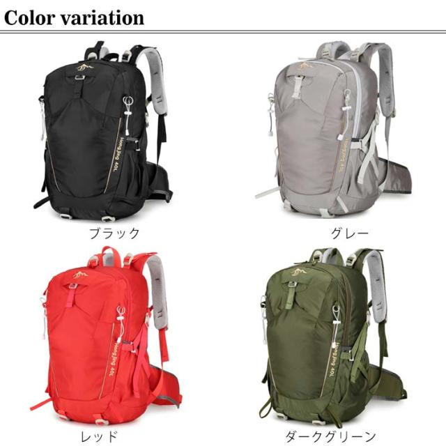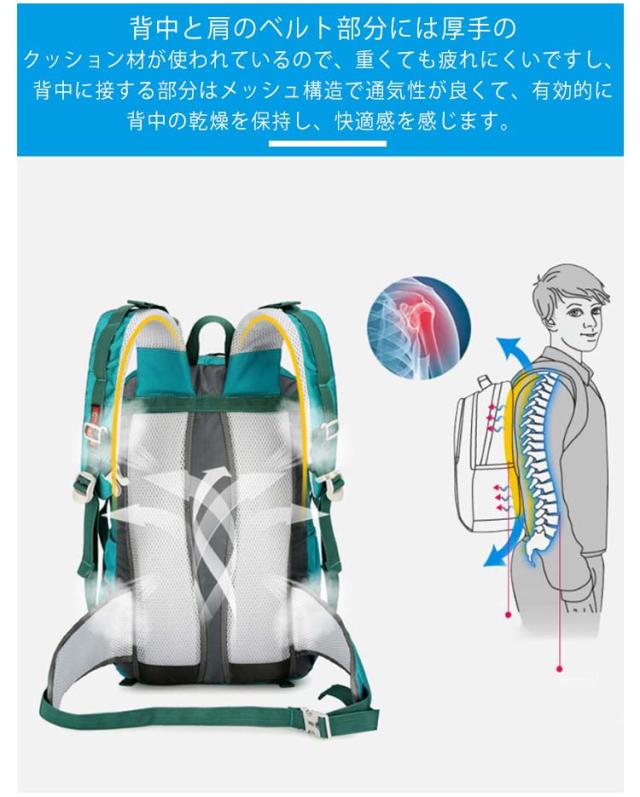| 幅広シーンで大活躍する登山リュック 登山リュックサック、防災リュック!キャンプ、旅行、ハイキング、バックパッキングなど、タフなシーンに適したリュックです。 撥水のあるナイロン素材を採用するので、雨でも安心使用できます。 ポケットも多くストックホルダーやドリンクホルダーもあり機能的にあなたをサポート。タウンからアウトドアまで幅広くお使い頂けます。 背中と肩のベルト部分には厚手のクッション材が使われているので、重くても疲れにくいですし、背中に接する部分はメッシュ構造で通気性が良くて、有効的に背中の乾燥を保持し、快適感を感じます。 | |