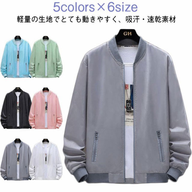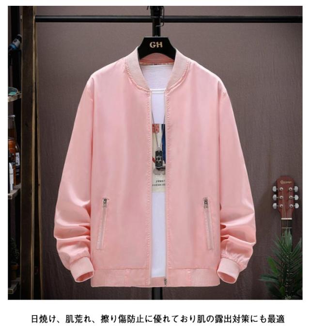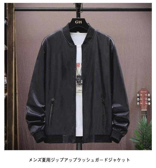紫外線対策 UVカット 吸汗速乾 ひんやり ジップアップ 軽量 長袖 夏用 ブルゾン ジャケット 日焼け防止 アウトドア 接触冷感 スタジャン ジャケット 薄手 UPF50+ ジャンパー 冷房対策 無地 メンズ ラッシュガード スタンドカラー 大きいサイズ カジュアル