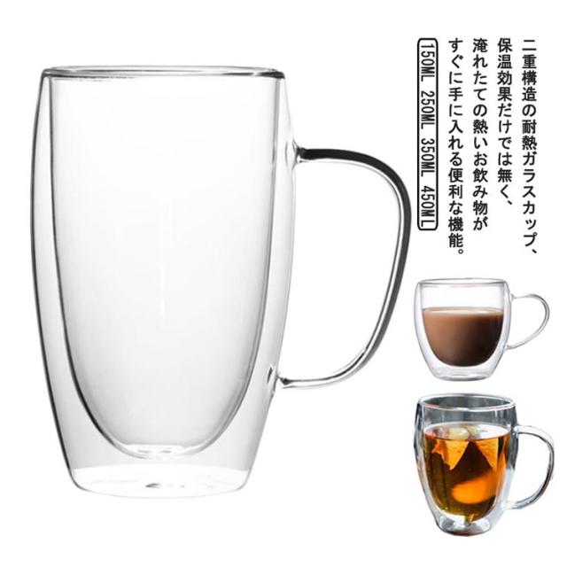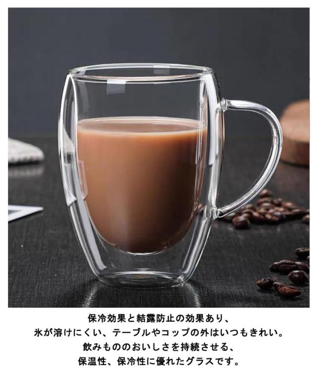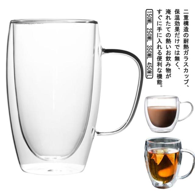 透明 ガラスカップ グラス 持ち手付き 結露しない コーヒーカップ 耐熱 クリア お茶カップ 2層構造 耐熱ガラス 洗いやすい コーヒーカップ 使いやすい タンブラー ダブルウォールグラス 保冷 ティーカップ マグカップ 可愛い ギフト プレゼント