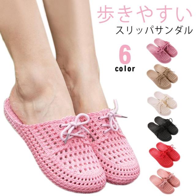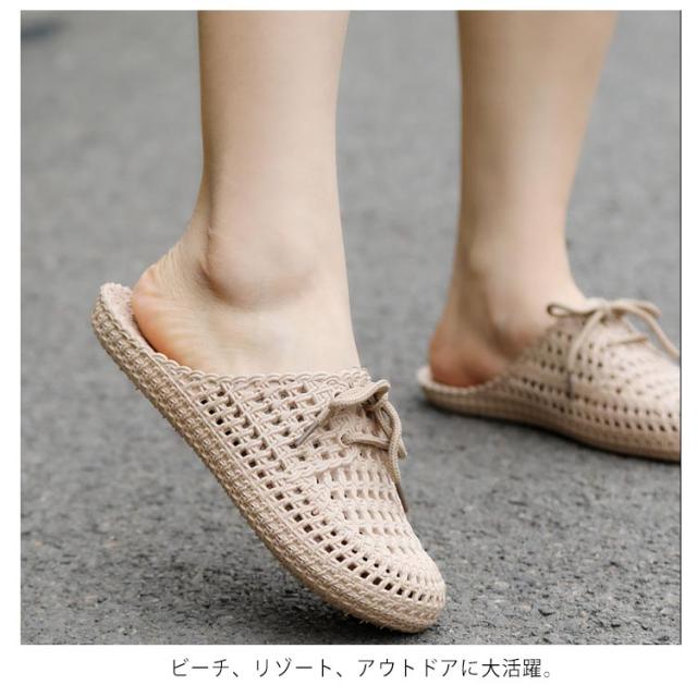 かかとなし フラットシューズ メッシュ ヒールサンダル バススリッパ パンプス 夏 歩きやすい ルームシューズ ローヒール レディース 可愛い サンダル ビーチ ぺたんこ PVCシューズ レインシューズ 軽量 雨靴 スリッパサンダル