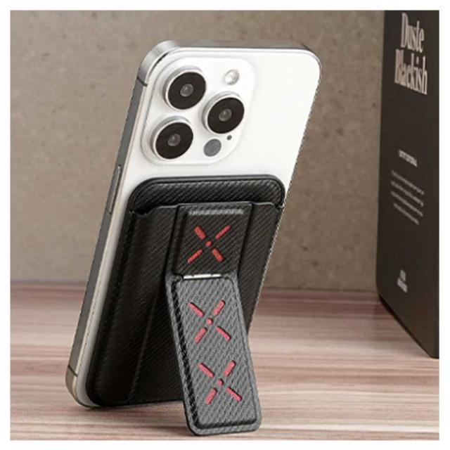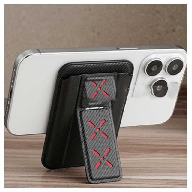 | 最大5枚カードOK!クレジットカードや運転免許証などをすっきり収納可能です。 スタンドを展開してすぐに取り出せ、畳めるとカードのようにスマホに付け、場所をとりません。 マグネット内蔵で、MagSafe対応機種にお使いいただけます。 縦置き&横置きOK、様々なシーンに対応可能です。 | |