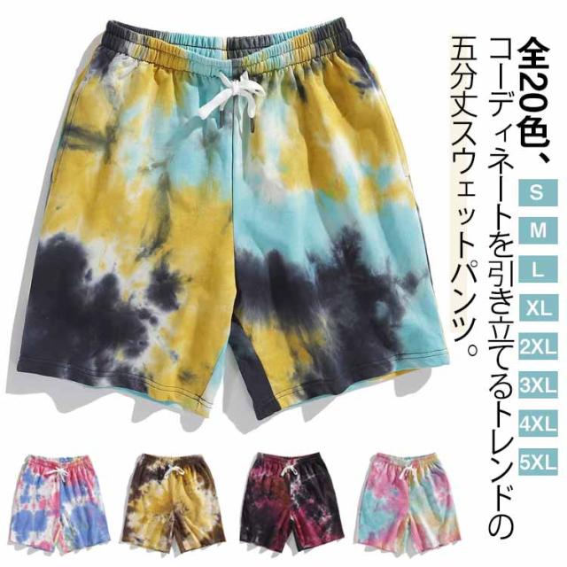 メンズ ルームウェア 全20色 タイダイ柄 ニュアンス 部屋着 ショートパンツ 短め パンツ 半ズボン タイダイ染め 全20色 膝上 柄パンツ イージーパンツ 大きいサイズ スエット 短パン お兄系 スポーツウエア 夏 夏服 夏物 ビーチ ハーフパンツ