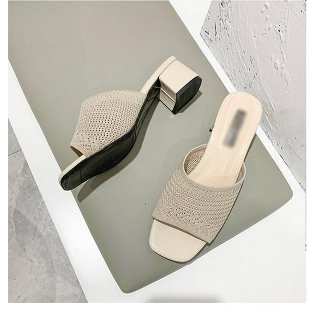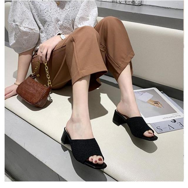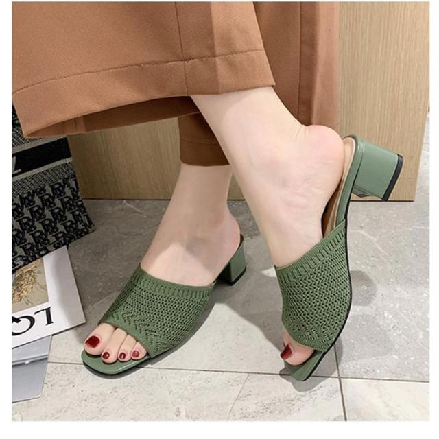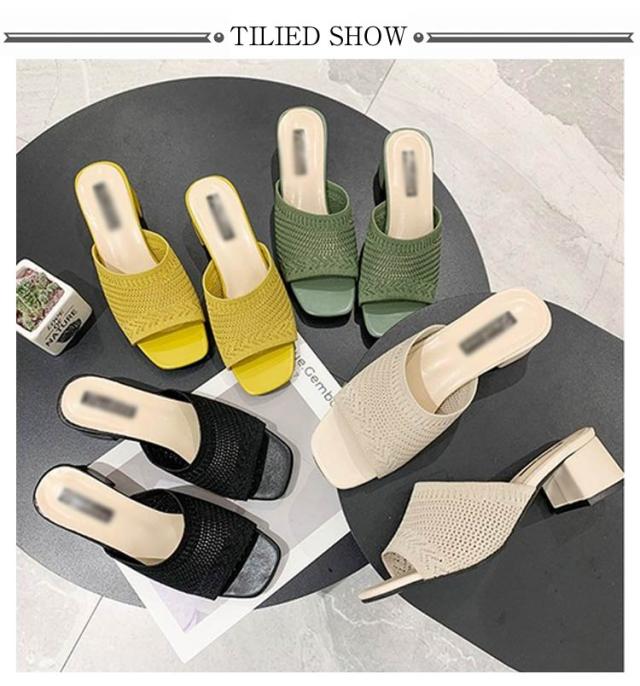 太ヒール ミュール ミュールサンダル 編みアッパー レディース ヒール5cm ニットサンダル ヒールサンダル オープントゥ 美脚 歩きやすい 履きやすい スクエアトゥ 美脚 ハイヒール シューズ 大きいサイズ 靴