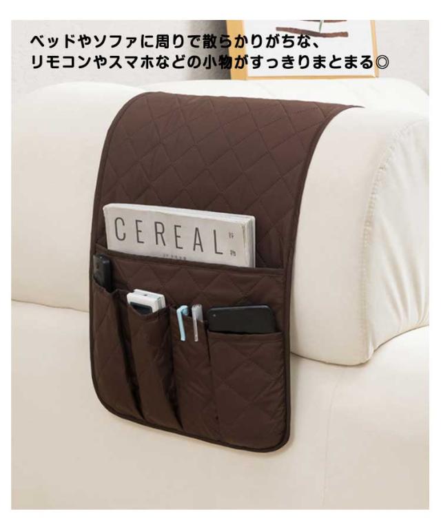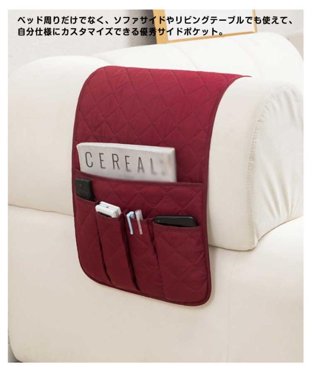 | ソファーやベッドの隙間に差し込むだけ◎とっても便利なサイドポケットです。 先端をソファーシートの隙間に差し込み、ソファーアームに被せて吊り下げるだけで簡単に装着できます。 テーブルのように場所をとらずに、メガネやスマホ、読みかけの本や文房具などを収納できます。 前面に配置された4つのポケットは、スマートフォンや化粧水ボトル、文庫本をしまうのにちょうどよいサイズ。 ベッドサイドはもちろんデスクまわりやソファ回りなどでお使いいただくのもGOOD。 | |