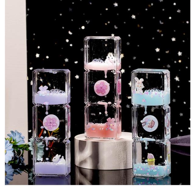 子供 面白い オイル砂時計 オイル時計 室内装飾品 桜 液体オイル 立体感 読書 リビング オフィス 書斎 オイルタイマー 贈り物 デコレーション 時計 オイルタイマー 透明 インテリア 部屋装飾品