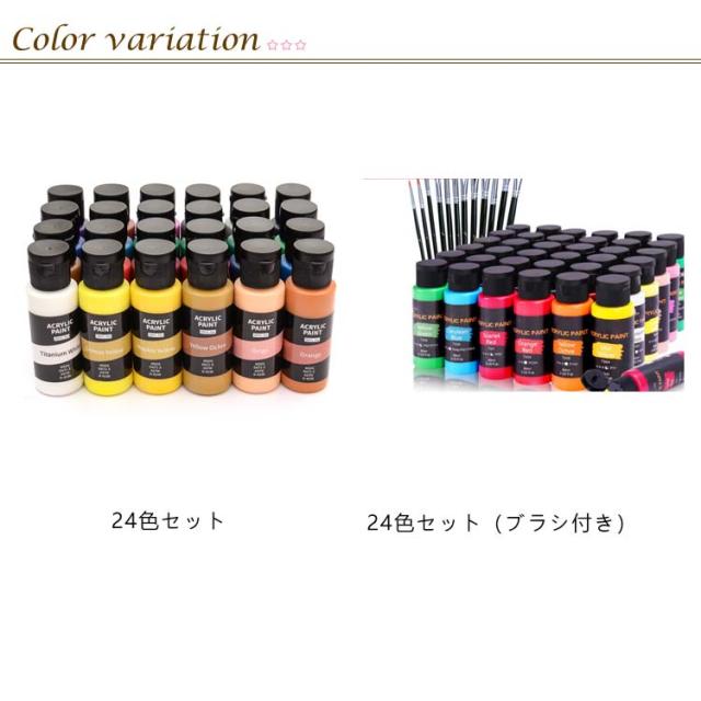 | 24ボトル アクリル絵の具 ブラシ付き 60ml 24種類ものカラーバリエーションがあります 様々な表面に着色し、?描き、クラフトに適する完璧な画材セットです 素晴らしいカバ一力とクリーミーな質感を持ち、混色をしやすく、重ね塗りも簡単です | |