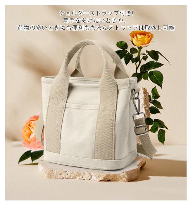 ミニトートバッグ 自立 ストラップ付き バッグ ミニトート レディース メンズ ショルダー ファスナー トートバッグ 小さめ ショルダーバッグ 通勤 軽量 弁当 収納 丈夫 仕切り 多収納 大きめ キャンバス トート ミニ 斜めがけ