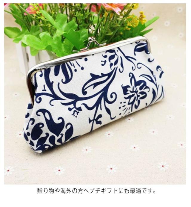 | ・伝統的な和柄が人気のがま口ポーチ ・小物をまとめるにはピッタリのサイズです。 ・がま口で開閉大きく開くので探しやすく取り出しやすい♪ ・カバンに入れてもかさばらず、コンパクトに収まります。 ・お薬ケースやカード入れ、ちょっとしたお裁縫ケースなど使い方はあなた次第です。 ・贈り物や海外の方へプチギフトにも最適です。 | |