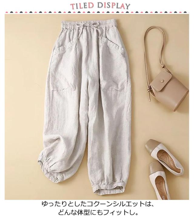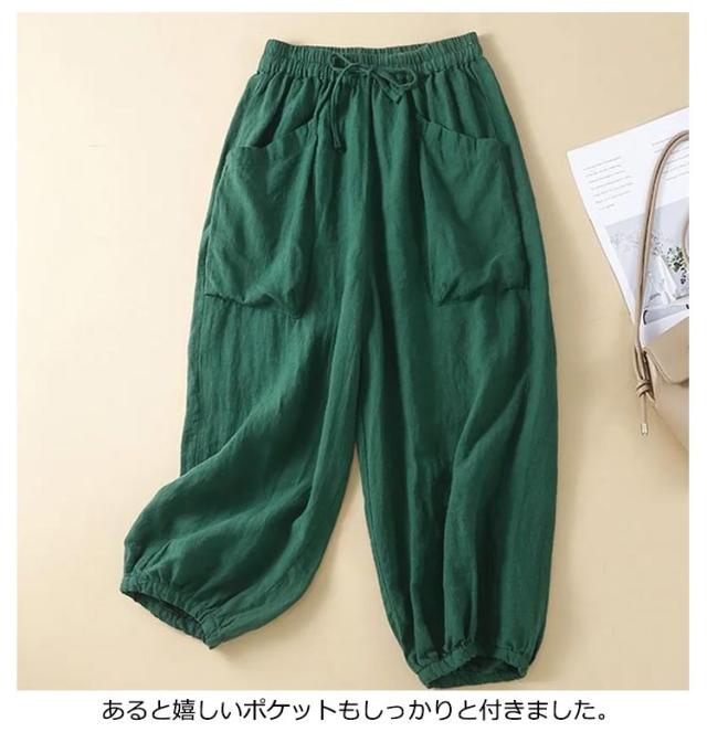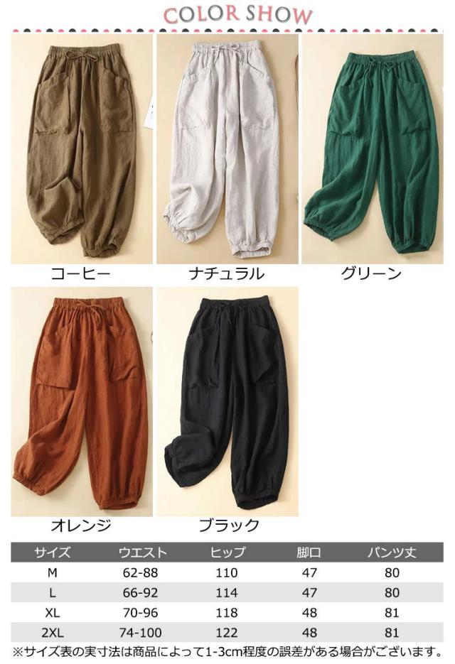麻 リネン 通気抜群 春 レディース 夏 リネンパンツ サルエルパンツ ロング丈 アンクルパンツ パンツ イージーパンツ ウェストゴム ボトムス 九分丈 薄手 麻 カジュアルパンツ ロングパンツ 大きいサイズ 体型カバー 部屋着