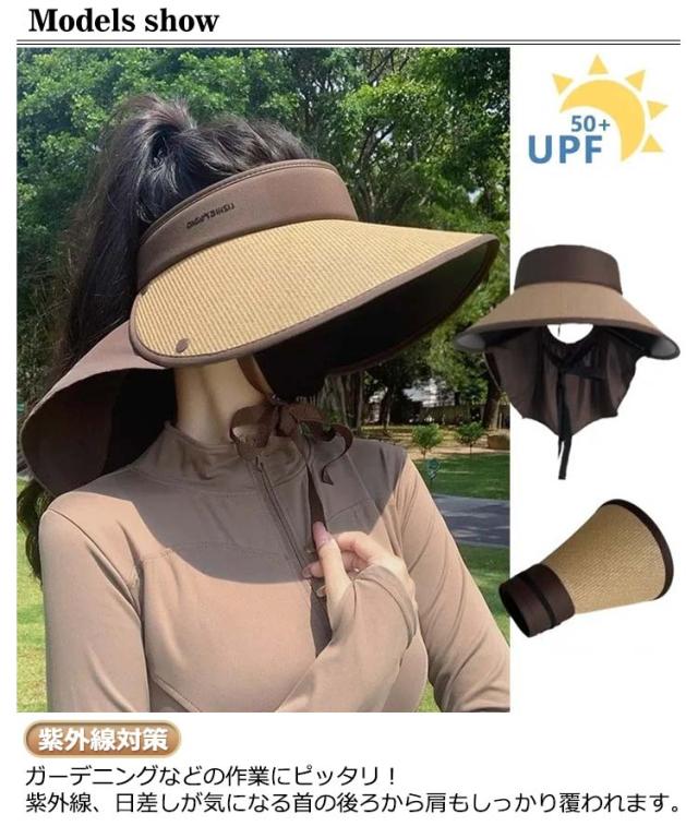 サンバイザー つば広 帽子 UV 大きいサイズ ガーデニング 首筋カバー メンズ 熱中症対策 ガーデニングハット 大きいサイズ レディース 日焼け防止 日よけ帽 麦わら帽子 春 夏 UVカット 農作業ネック 紫外線対策ハット 帽子掛け 漁師キャップ 帽子