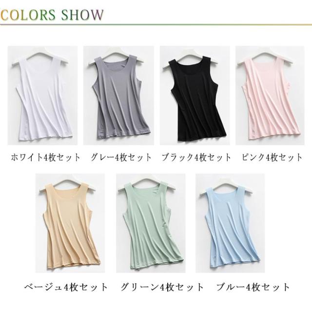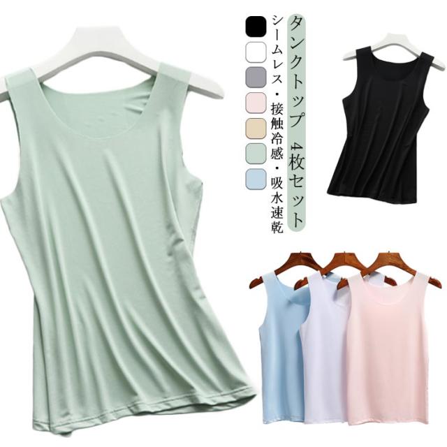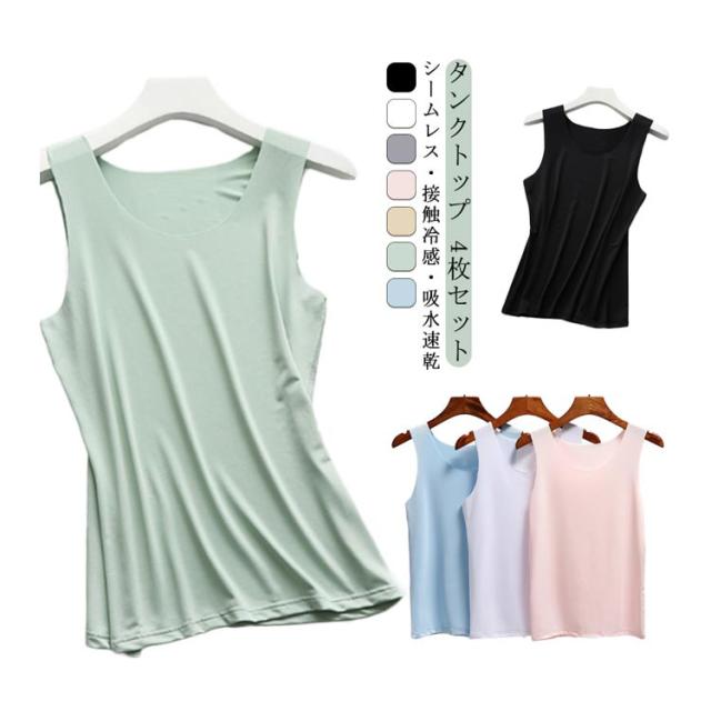 下着 接触冷感 タンクトップ 涼感 インナーシャツ トップス 冷感 インナー 夏 タンクトップ ひんやり 肌着 レディース Uネック シームレス 4枚セット 速乾 スポーツ アンダーウェア ノースリーブ ストレッチ 大きいサイズ 無地 レイヤード