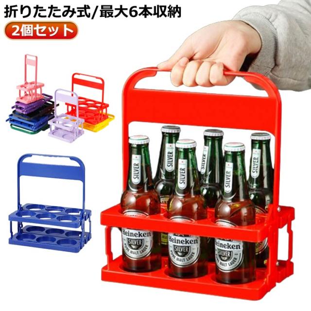 ドリンクホルダー ワインボトル ボトルホルダー バー ポータブル 6本用 ボトルケージ 2個入り ビール ボトルキャリアー ビールを運ぶ 2個入り ラック ビール瓶 ラック 折りたたみ バスケット ラック 収納 ディスプレイ ラック