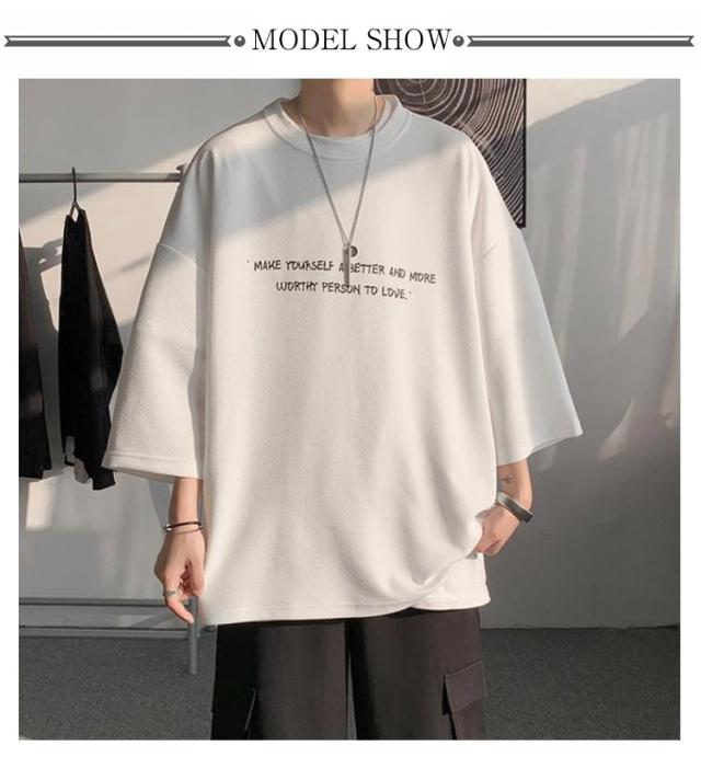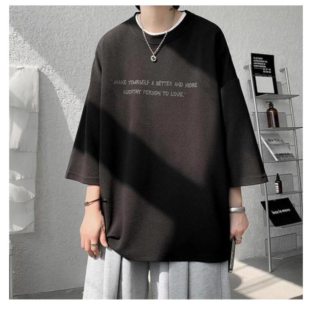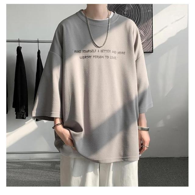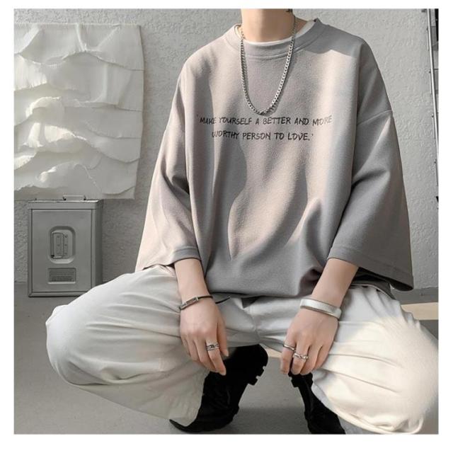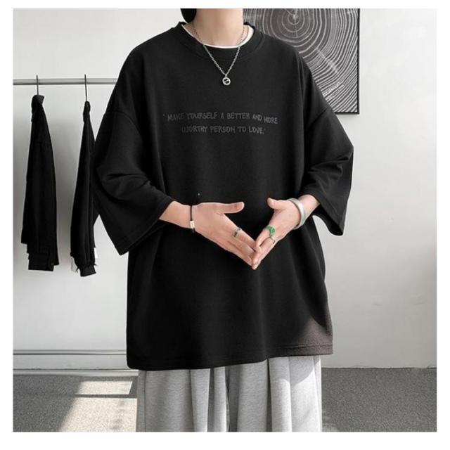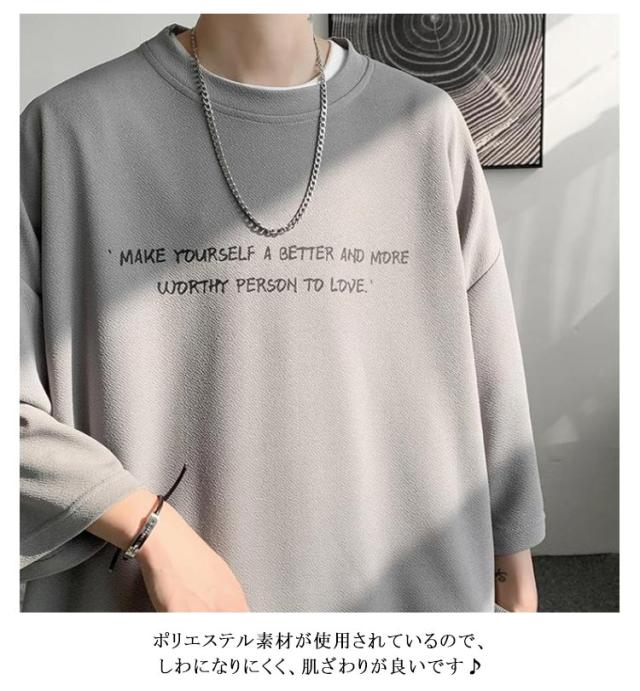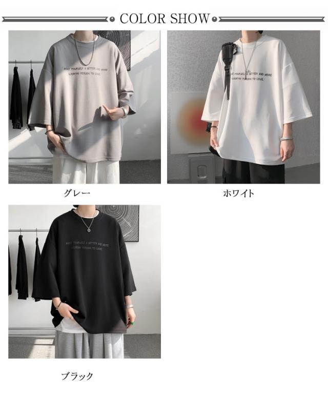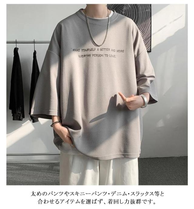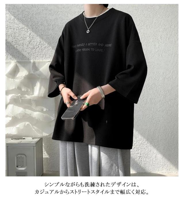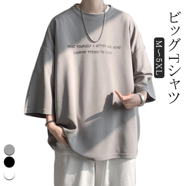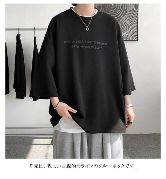 カジュアル tシャツ 速乾 オーバーサイズ ビッグtシャツ ゆったり 7分袖 ビッグシルエット 5分袖 丸首 大きいサイズ 冷感 ゆったり メンズ 夏 秋 オシャレ クルーネック 韓国ファッション 半袖tシャツ 黒 白 グレー 春