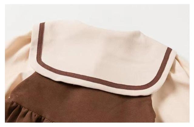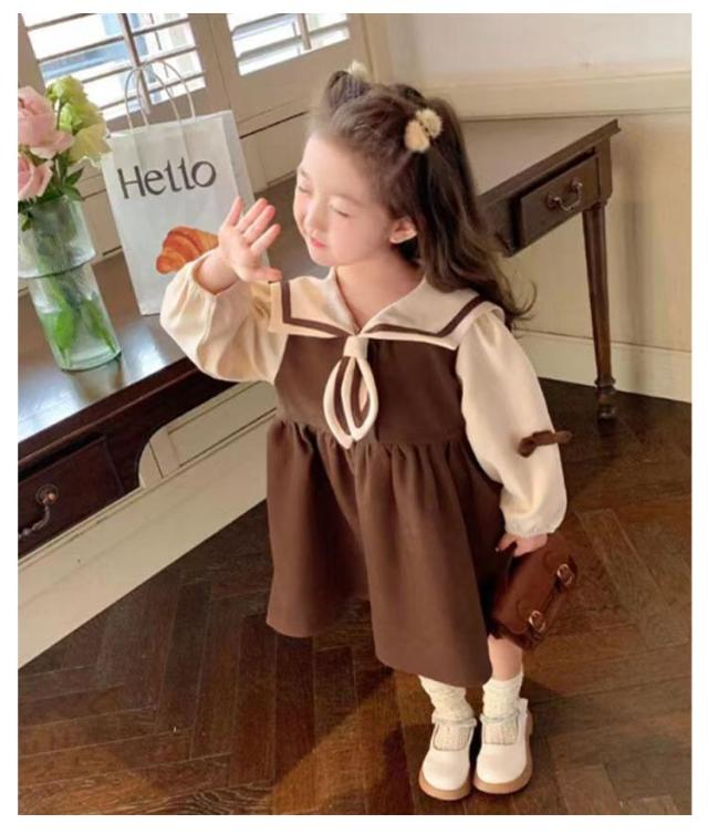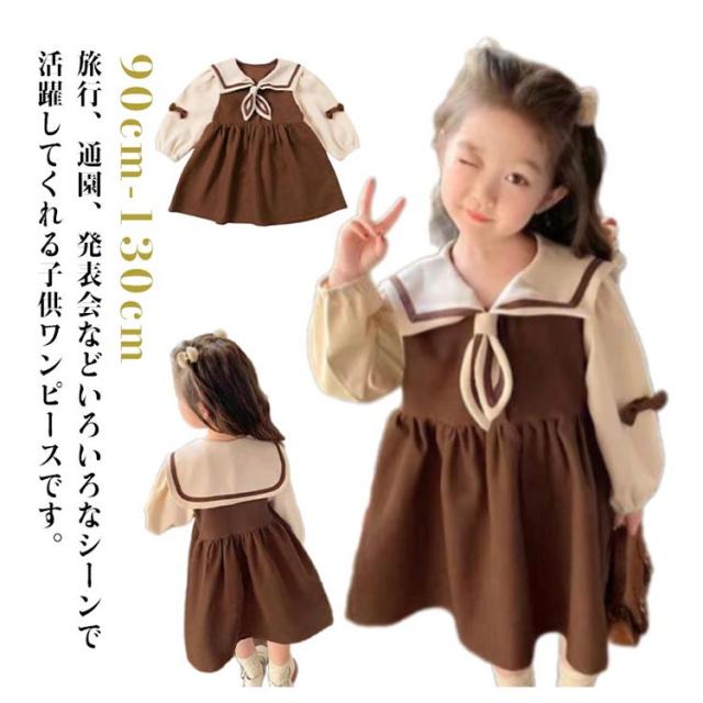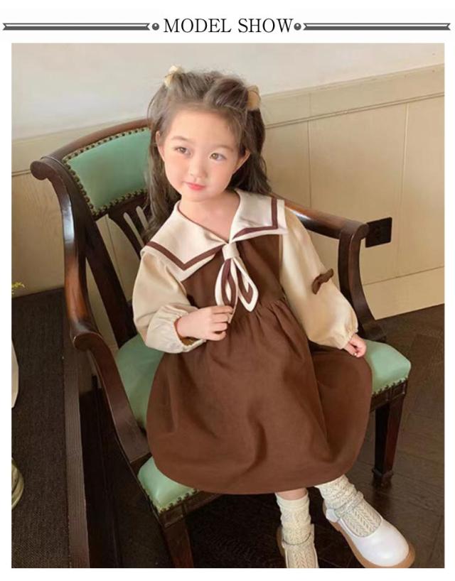 キッズ 長袖 ドレス マリン風 襟付き コットン 秋 子供服 春 ワンピース リボン 切り替え セーラー襟 森ガール お出かけ かわいい おしゃれ 誕生日 お姫様 七五三 女の子