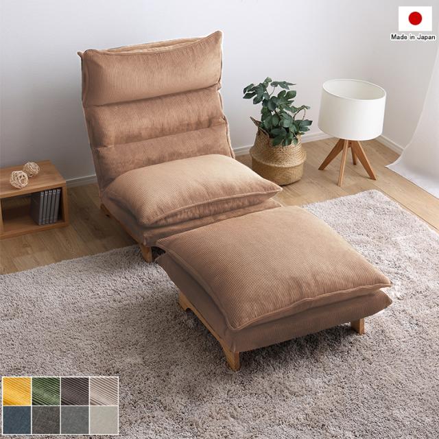 リクライニングローソファ オットマンセット 日本製 脚付き コーデュロイ ベージュ色 全8色 ふっくら極厚ウレタン2重クッ ション 座椅子 パーソナルソファ シェーズロング