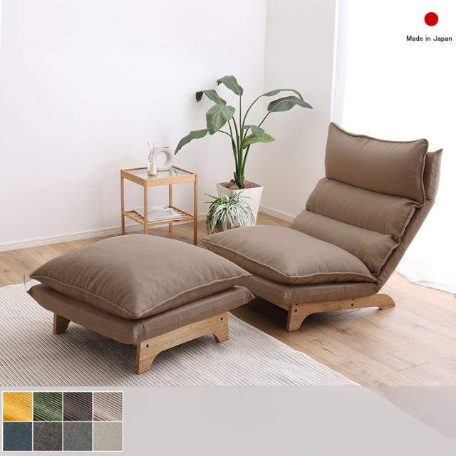 リクライニングローソファ オットマンセット 日本製 脚付き やわらか生地 ブラウン色 全8色 ふっくら極厚ウレタン2重クッ ション 座椅子 パーソナルソファ シェーズロング 足置き リラックスチェア