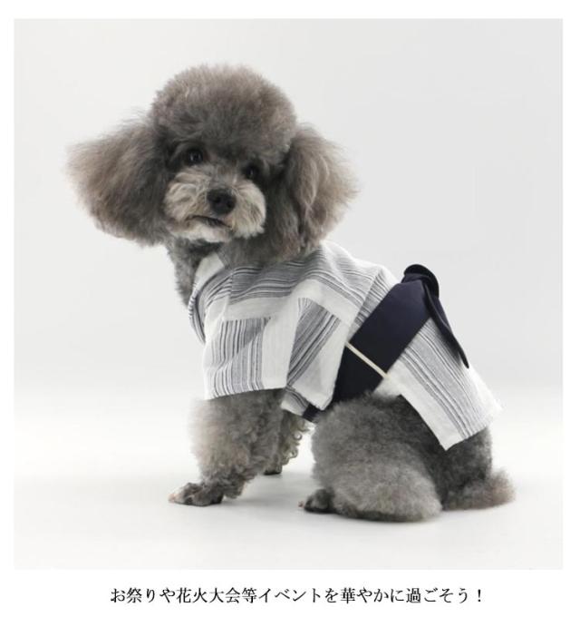 | 記念日撮影にぴったりなペット用甚平です。 雰囲気のある和柄やストライプ柄など、可愛いデザインになります。 シンプルで着やすい色味&柄で犬種や猫種、問わず着やすいデザイン! お祭りや花火大会等イベントを華やかに過ごそう! | |