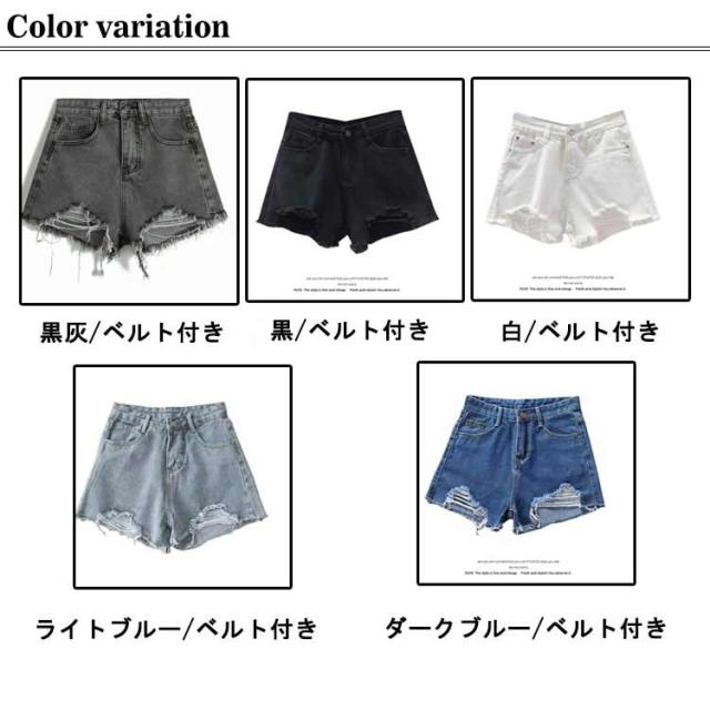 美脚 おしゃれ レディース ダメージデニム ベルト付き デニムパンツ 着?せ ズボン ショートパンツ ジーンズ デニムショートパンツ ジーパン 夏 通勤 ビーチ ボトムス ビーチパンツ ショーパン ハイウエスト ショート丈 パンツ きれいめ 韓国風 かわいい デニム 通学 短パン