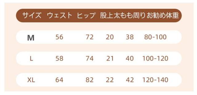 | サイズについての説明 | サイズ ウエスト ヒップ 股丈 もも周り ※サイズ表の実寸法は商品によって1-3cm程度の誤差がある場合がございます。 |