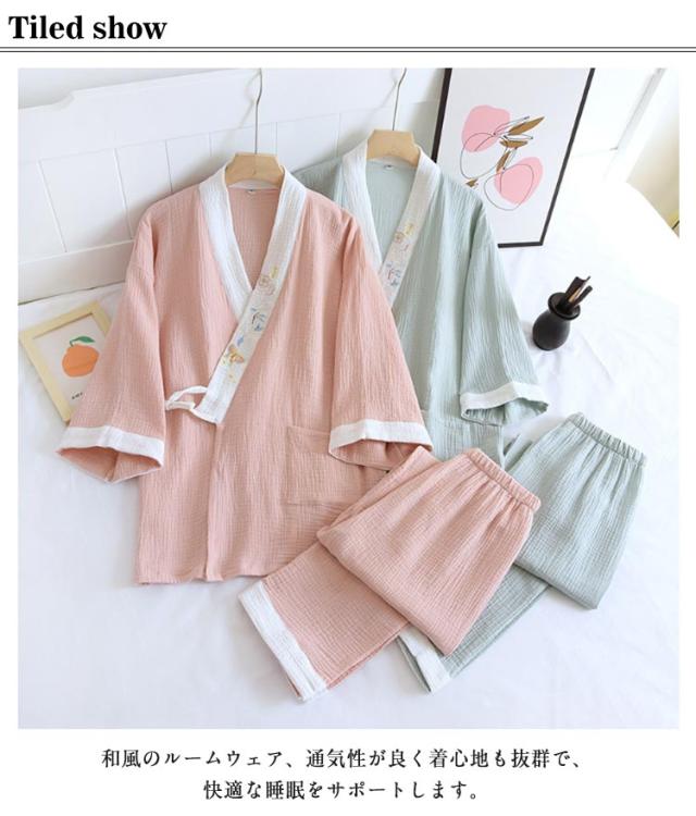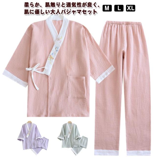 上下セット 作務衣 綿パジャマ 浴衣 部屋着 ルームウエア レディース 夏 前開き ナチュラル 和風 旅館 コットン 通気性 寝間着 かわいい 吸汗吸湿 ナイトウエア 女性 浴衣 お風呂 五分袖 ホテル 上セットアップ 春 甚平 秋 ギフト プレゼント
