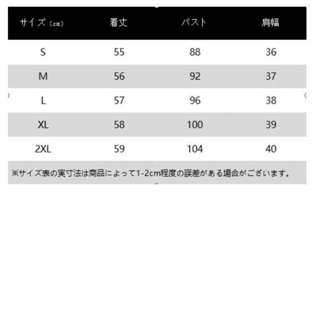 | サイズ | S M L XL 2XL |