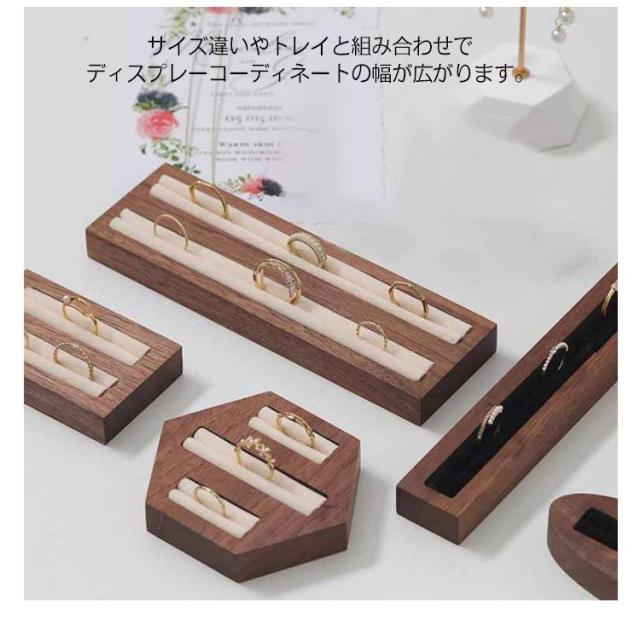 | 全10種、高級感のある木目調で仕上げたリング用ディスプレイスタンド。 シンプルで安定感のある美しい仕上がりは、店舗やご自宅でご使用頂ける本格派の商品です。 サイズ違いやトレイと組み合わせでディスプレーコーディネートの幅が広がります。 ネットショッピングの商品撮影など様々な場面でお使いいただけます。 お店のガラスケースやショーケースに指輪を飾るにもぴったりです。 指輪だけで置いておくと失くしやすいので、ぜひこのスタンドを使ってください。 | |