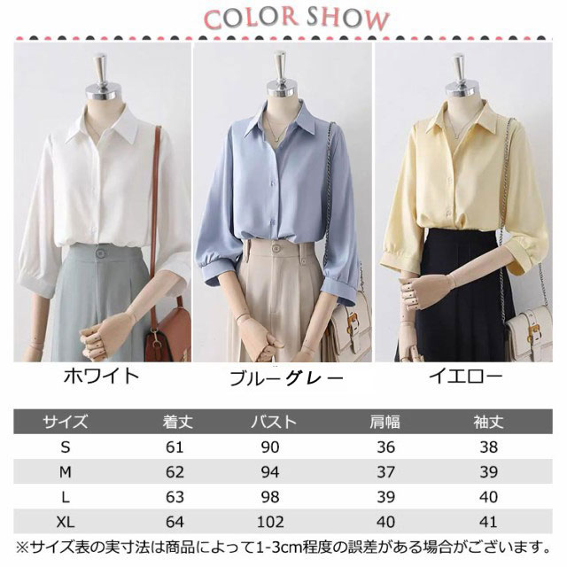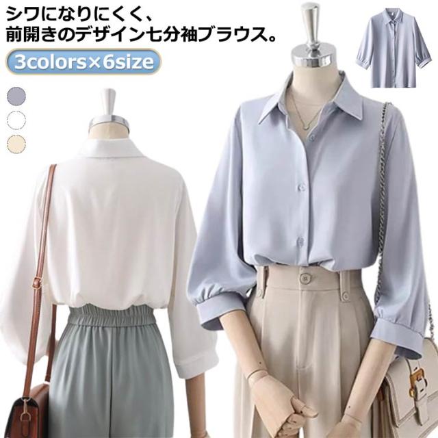 | 3colors×6size シワになりにくく、前開きのデザイン七分袖ブラウス | |