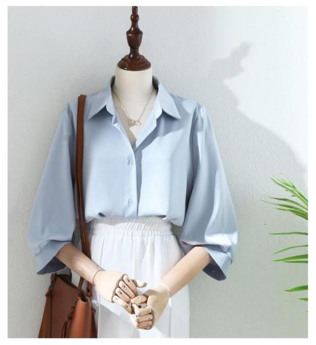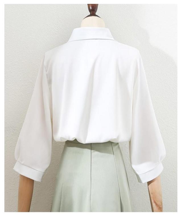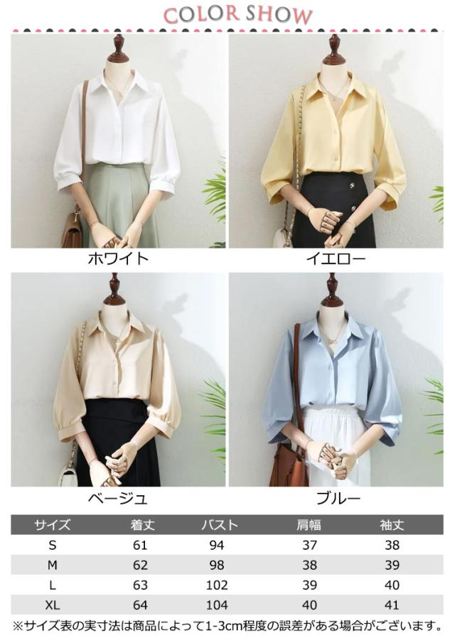 7分袖 襟付き 七分袖 女性 着痩せ トップス シャツ 衿 着痩せ ブラウス レディース 白ブラウス 通勤 シワになりにくい ゆったり トップス オフィス お出かけ 事務服 フェミニン カジュアル 体型カバー おしゃれ