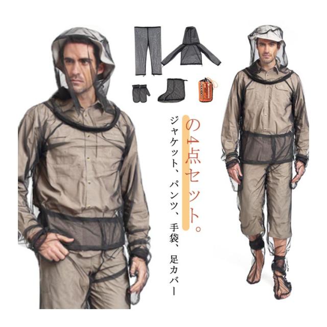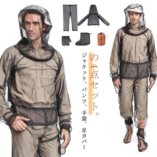虫対策 4点セット 収納袋付き 防蚊 ガーデニング 防虫 防蜂 アウトドア 防虫ウエア メッシュ 通気性 農作業 釣り 男女兼用 ガーデニング 野外活動 山登り 虫除けウエア