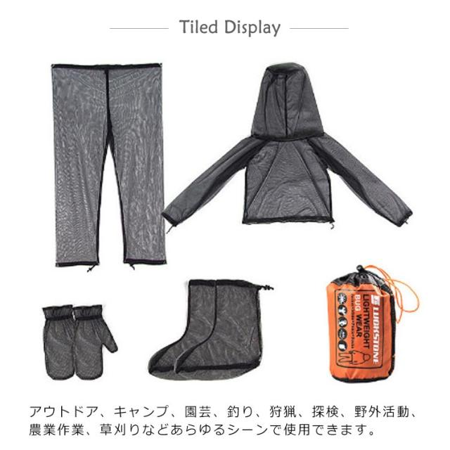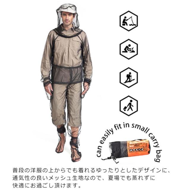 | ジャケット、パンツ、手袋、足カバー の4点セット。 蚊よけの「蚊帳」のように体を包んでくれます。 普段の洋服の上からでも着れるゆったりとしたデザインに、通気性の良いメッシュ生地なので、夏場でも蒸れずに快適にお過ごし頂けます。着用するだけで虫を避けることができます。高密度の糸で全面的に蚊や草、釣りなどからの虫刺されを防ぎます。 通気性、耐天候性、耐摩耗性などの優れた性能を持ち、快適な着心地です。 軽量で持ち運びに便利です。収納袋が付属しており、使用しない場合はコンパクトに収納できます。 アウトドア、キャンプ、園芸、釣り、狩猟、探検、野外活動、農業作業、草刈りなどあらゆるシーンで使用できます。 | |