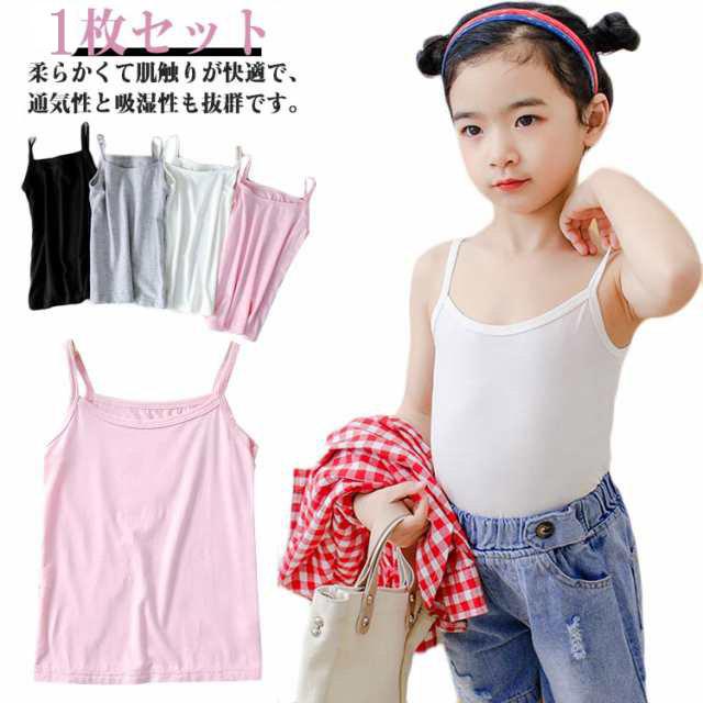 【1枚セット】 キッズ ジュニア キャミソール ファーストブラ 90-160cm 4色 ブラトップ インナー 下着 中学生 小学生 女の子 肌着 子供服 薄手 春 夏 秋 アンダーウェア ガールズ 白 黒 無地 シンプル