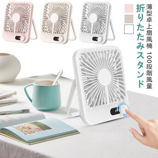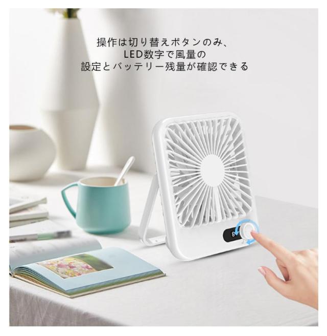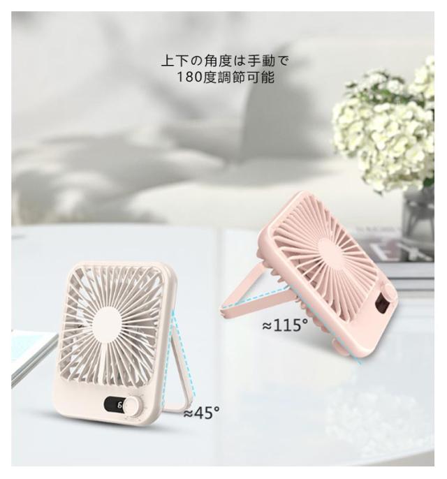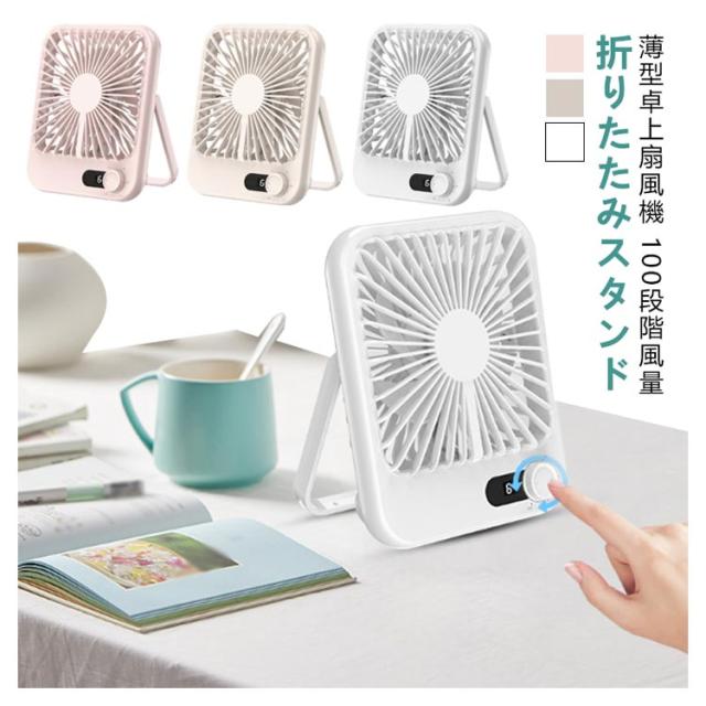 | 薄型卓上扇風機 100段階風量 折りたたみスタンド 卓上&壁掛け。どこでも楽に掛けます 静音で気にならない 上下の角度は手動で180度調節可能 操作は切り替えボタンのみ、LED数字で風量の設定とバッテリー残量が確認できる 背面にはアロマタブレットを付ける | |