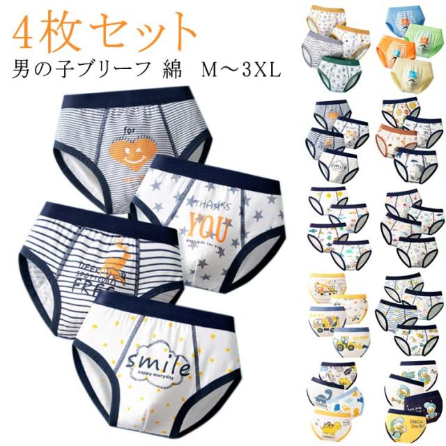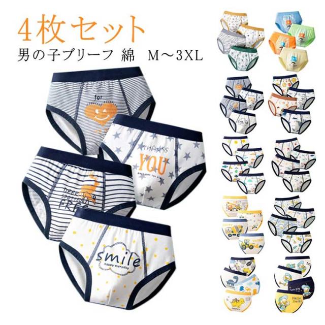 春 4枚セット キッズ 下着 M〜3XL 子供 インナーパンツ ブリーフ インナー 肌着 ジュニア ボーイズ 綿 子供下着 ショーツ 幼児 男児 男の子 通気 ストレッチ ベビー 4枚セット 夏 小学校 小学生 通園 園児 保育園 幼稚園
