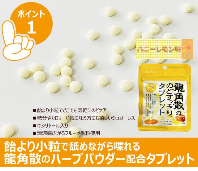 飴より小粒なので、いつでも、どこでもサッと舐められる!龍角散のハーブパウダーを配合したのどケアのためのタブレットです。