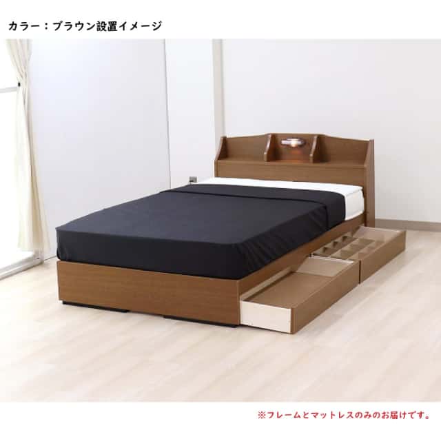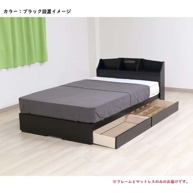 ベッド シングル マットレス付き 日本製フレーム 棚 照明 コンセント 引き出し付き デザインベッド 収納ベッド 黒 茶 白 【代引不可】