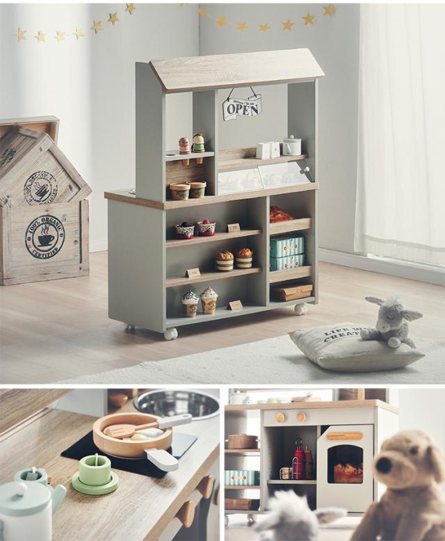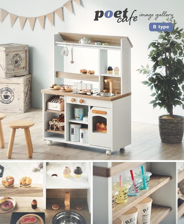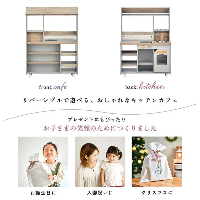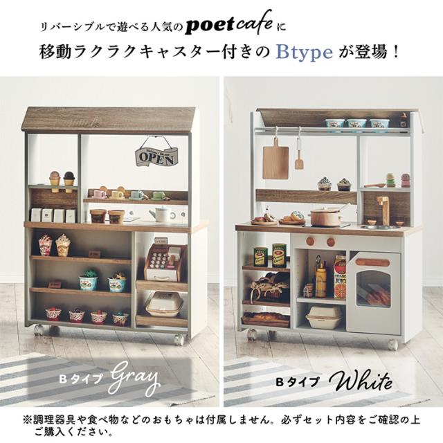 ままごとキッチン ままごとセット お店屋さん ごっこ遊び おままごとキッチン キッチンカフェ 知育玩具 リバーシブル ままごと おままごと キッチン キャスター付き 木製 シンプル poet cafe(ポエトカフェ) Bタイプ 2色対応