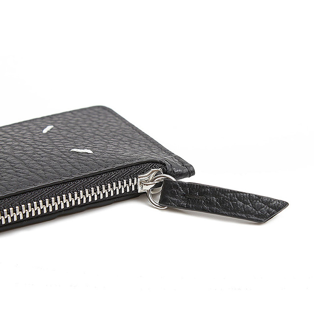 | 仕様 | 開閉:ファスナー、外側:カード入れ×5、重量:30g、カラー:ブラック、金具:シルバー、ステッチ:ホワイト |