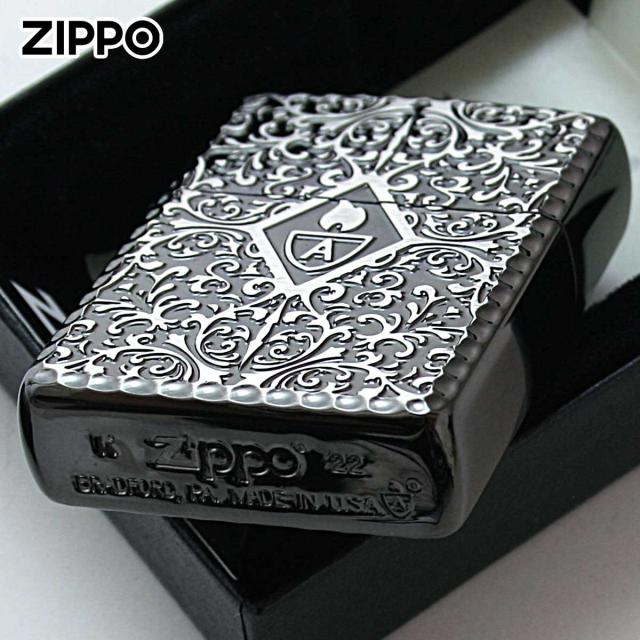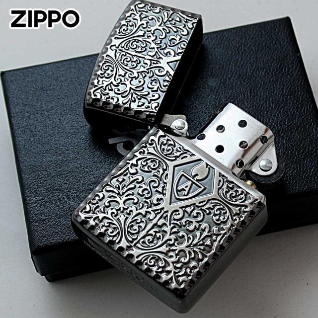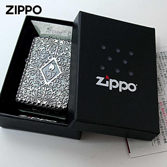 表面アラベスク柄の中心にアーマーロゴ、ケースの角はコーナーリューターカット加工、両面加工と至れり尽くせりのZIPPO。アーマーとは、レギュラーケースの1.5倍の厚みを持つケースのこと。デザインもゴージャスで華やか、高級感抜群の仕上がりです。フォーマルなシーンで活躍しそうな逸品!