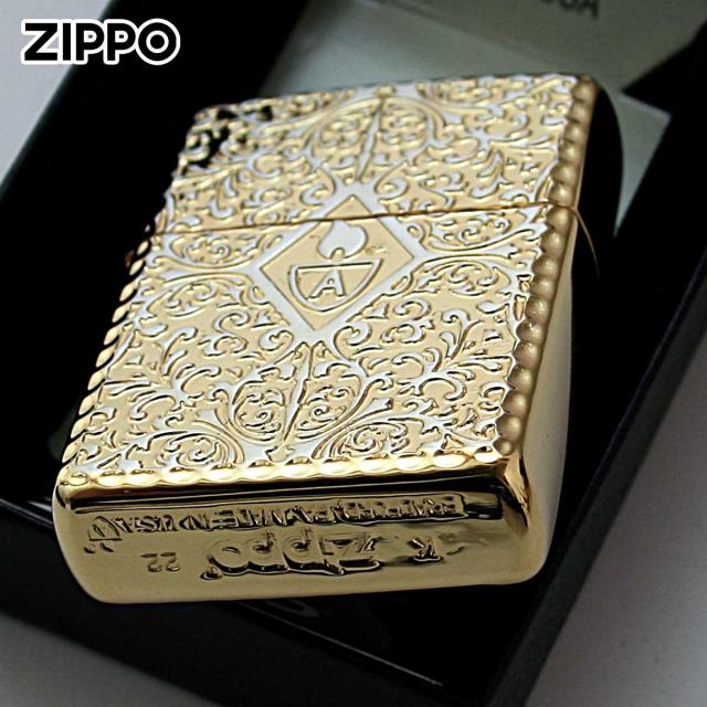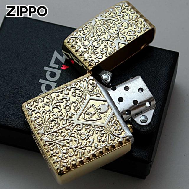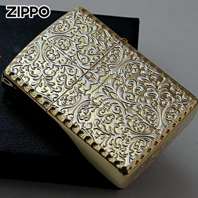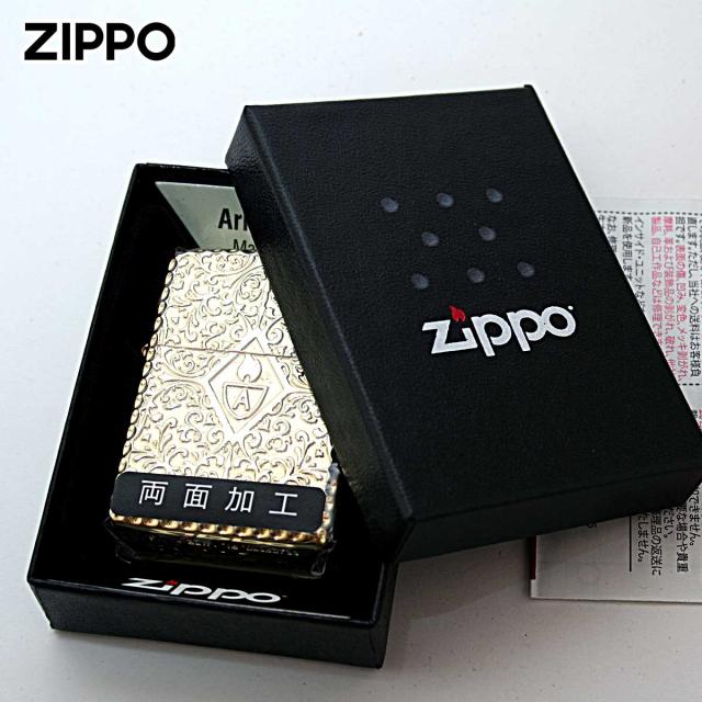 表面アラベスク柄の中心にアーマーロゴ、ケースの角はコーナーリューターカット加工、両面加工と至れり尽くせりのZIPPO。アーマーとは、レギュラーケースの1.5倍の厚みを持つケースのこと。デザインもゴージャスで華やか、高級感抜群の仕上がりです。フォーマルなシーンで活躍しそうな逸品!